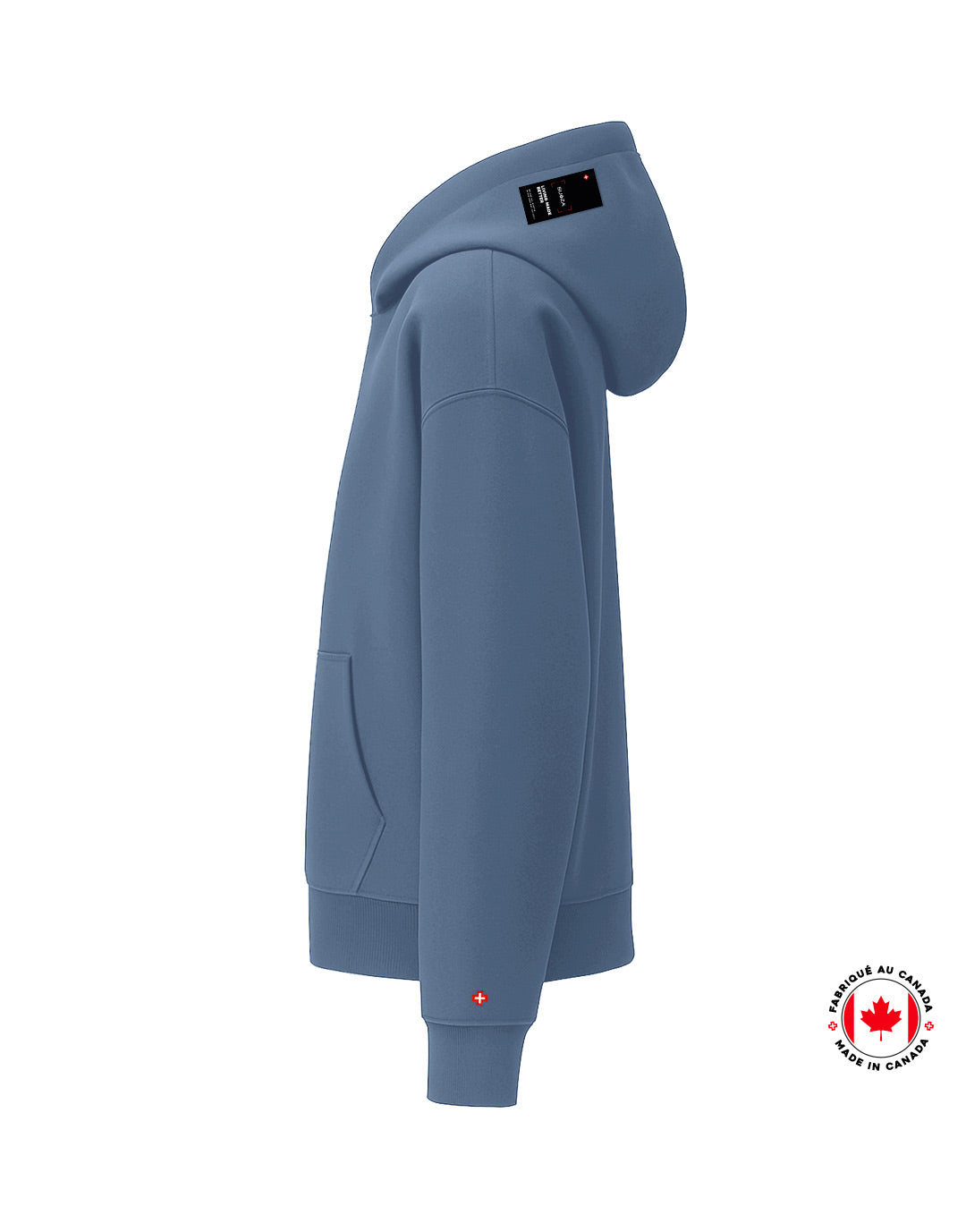 Fabriqué au Canada dans un molleton 100 % coton biologique, il présente des épaules tombantes, une capuche doublée, un kangourou pratique ainsi que des poignets et une taille en bord côte. Une pièce durable qui marie parfaitement confort et responsabilité.